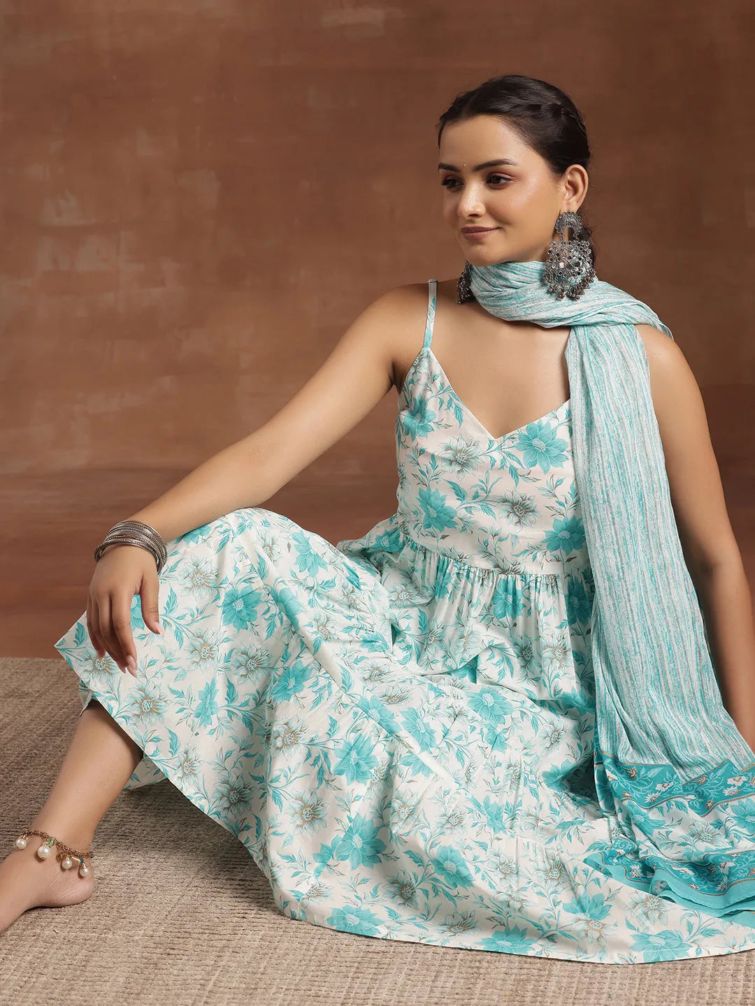 Be the first to review “Blue Printed Cotton Anarkali Suit With”