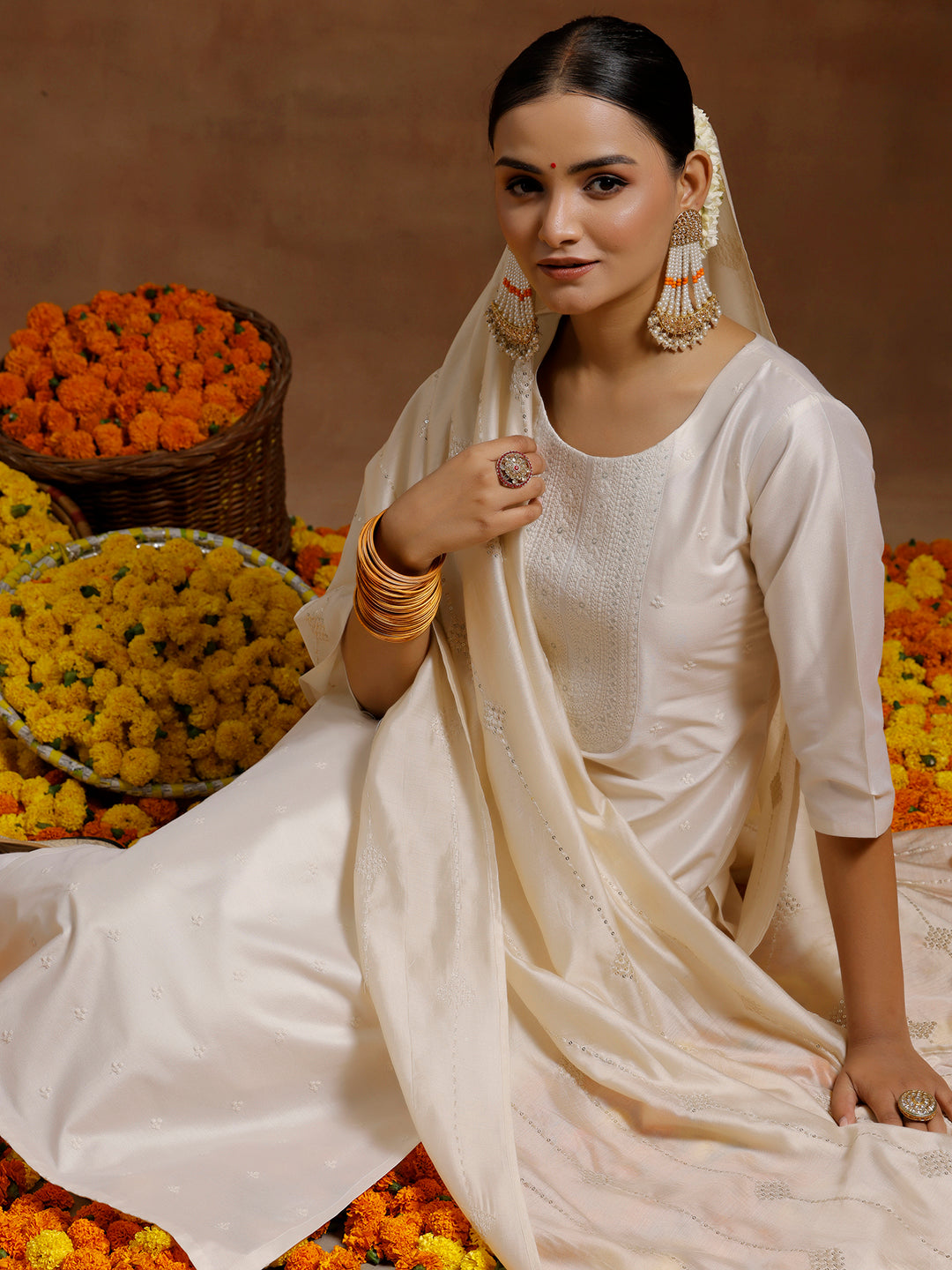 Be the first to review “Off White Embroidered Silk Blend Straight”